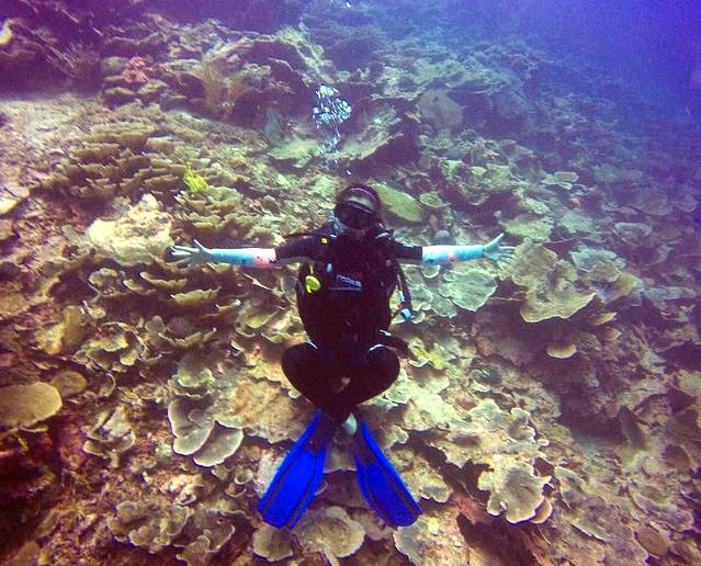 小贴士:潜水时,为了保护珊瑚礁,尽量不要涂防晒霜。至于原因,请找度娘!!