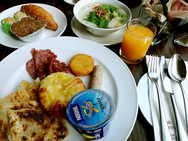 太平洋的早餐还不错哦,有6种可以选择。我个人比较喜欢西餐和鸡肉丝粥。