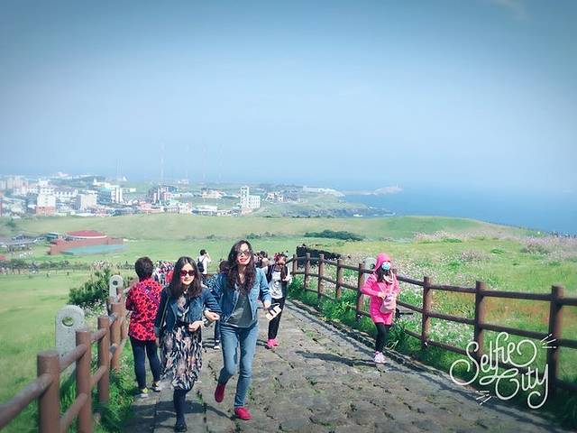 4/22 天气晴,这样美好的天气据说真的不太常有,与阴天说byebye,开启我们的一日游之行。一日游是提前预定的,会在出发前的一天有人联系你,具体酒店的位置和电话需要名片发给对方,另外还有到达时间,所以最好不要迟到。司机在8点55分接到我们就直接奔赴我们的第一个景点——城山日出峰。由于是散客拼团,所以我们这一行人有8人,有来自北京的母女,天津的老姐妹,南京的小情侣还有来自苏州的我们。尽管来自中国的不同地方,却在异国他乡偶遇也算是一种缘分。