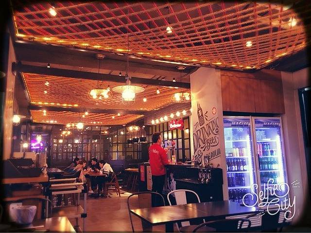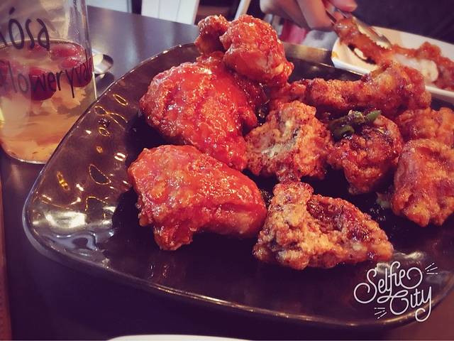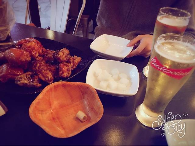 讨论了半天也没发现到底怎么样的原因才会导致这样的错觉。就让司机在新罗放我们下来,看到新罗都是人都后怕了,没敢挤进去,我们继续找我们找了几天都没找到的BBQ炸鸡与啤酒,很想吃,总感觉没吃到会后悔。结果依靠韩巢网地图还是走了不少冤枉路后找到了目的地。很喜欢店面的格局,很有情调。点了一份炸鸡与啤酒的套餐,吃到撑