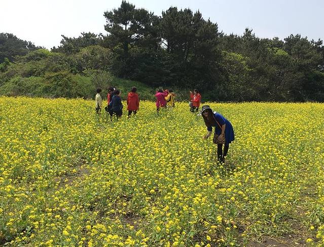 到了牛岛就被岛上的一大片油菜花吸引了,我被一大群朋友圈的好友鄙视了,都说国内的油菜花比这片的好,好吧,我也承认,但一看这边的油菜花就觉得踩踏现象好严重。月是故乡明,油菜花还是国内的好。。。或许国内再好的油菜花都没有时间欣赏,借着假期既然来了也可以看看不是吗?