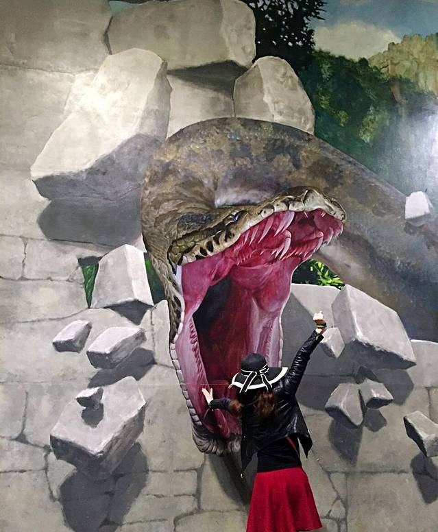 关于景点的最后一站我们去了3D奥妙艺术博物馆,门票价格加5D的电影来说的话在济州岛有些小贵的,折合人民币也要100多一张票,当然在国内是再平常不过了。话说5D电影真的是很短,也就10分钟的过程,还没过瘾就没有了。随后就去了3D馆,人还是蛮多的,所以有些东西都来不及摆pose。