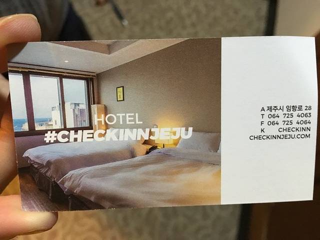 由于是3月底才匆忙决定去济州,所以一切都是那么的茫然,不过机票确定了,可以确定住宿了。订了晚了,剩下的又是好评又是位置绝佳的并不多。选择住宿的网站一般选择booking或者是agoda,艺龙也有预定境外的酒店,可以对比着看看。我是习惯了在booking上预定境外的酒店了,因为是可以免费取消的,对于选择恐惧症的人来说是一项很重要的政策。最后通过booking预定了黑猪街附近的Check inn Jeju hotel。对于这点我是有失策的:1,黑猪街附近是属于旧济州区域,离新罗和乐天免税店较远,离出名的宝健路和神话街也远,大概有5公里左右的路程,心情好还可以当作散步走走,心情不好就只能打的,打的一般费用在6800韩币左右。2,附近周边娱乐的比较少,晚上比较清静。3,很多的士司机都不知道酒店的具体位置,所以打车偶有不便。不过有弊也有利,离市中心远么比较清静,节省市中心逛街的花费。另外,济州出名的黑猪肉一条街还有生鱼片一条街都在附近,基本上步行200米左右都能到达,这点还是值得肯定的。具体的酒店图片可以参考booking上的,性价比很高,酒店干净整洁,小而温馨,热水很足够,地暖也是相当给力。前台说是有会中文的欧巴,但貌似我们没遇到,全程英文沟通,不过基本的日常交流还是没有问题的,这点可以放心。另外济州岛一般的酒店都不提供早餐的,所以都会提前一天准备好第二天早上的早餐。