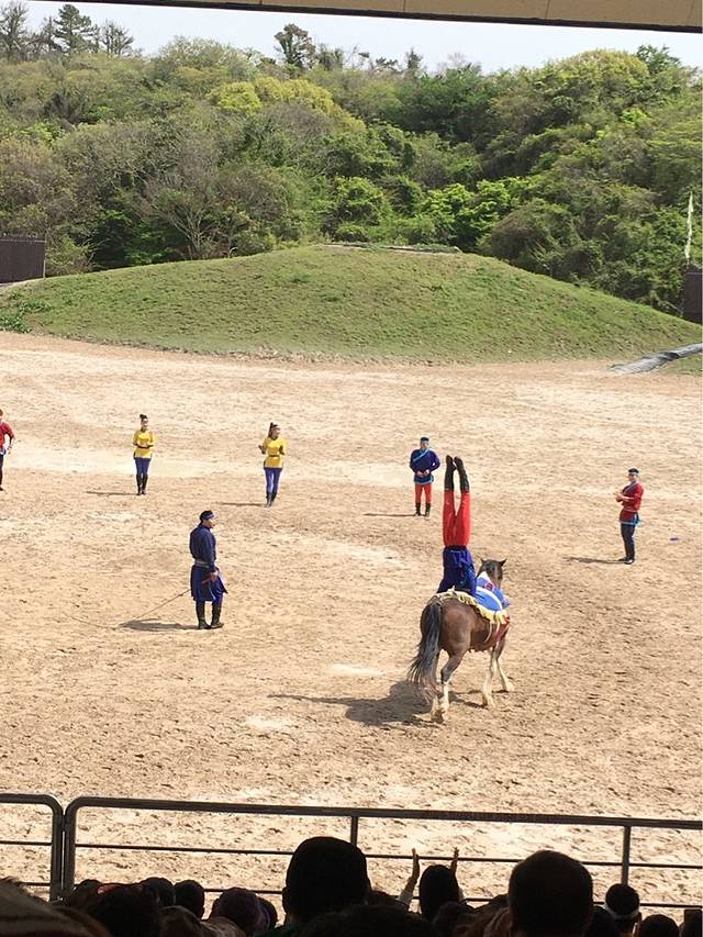 下一站就去the 马 park,开了很久得一段路,差点昏昏沉沉中睡着了,到了现场,还没看到场景,就被鸟叔的欧巴杠杠style给带动的半点睡意都没有了。整个气氛都是那么得热烈高涨,基本上都是蒙古来的有特长的,每个人都会展现自己的拿手的技能,真的是看着血脉喷张,整个人已经完全清醒了。整个流程在一个小时左右,我们赶上了下午2点的那场,蛮不错的,听说雨雪天都会表演,尽管表演中也有失误,但这个才是最真实的,或许在国内已经看惯了零失误的表演,难免觉得有些苛刻了。