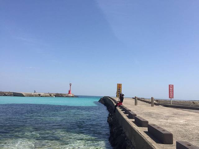 10点50左右我们都陆陆续续回到车上,赶往我们下一个景点——牛岛。牛岛应该是每个去济州岛的人必去的景点了。关于牛岛上岛的方式还是主要靠轮渡,一种是你坐船去牛岛然后靠环岛大巴参观每一个景点,此方式比较省钱,但大巴的时间不好掌握,大巴的间隔时间是20-30分钟一班,所以比较省钱但不省力。还有一种就是我们大家商量下来决定的,我们叫司机把车轮渡一起轮渡过去之后包车游玩,此方法价格稍贵但游玩省力,8个人平均分摊下来价格还是可以接受的。司机车的轮渡费是30000韩币,包车费是100000韩币,平均下来是每人16000韩币左右。如果有一起分摊的伙伴还是推荐后者。就是在我们跟司机讨价还价中发生了一丁点的小分歧,但最后还是很愉快的按照司机的价格上岛了。后来真觉得这么辛苦的一天130000韩币其实一点都不多,在济州岛吃顿烤肉都要500多,所以我们还是可以理解司机的难处的。