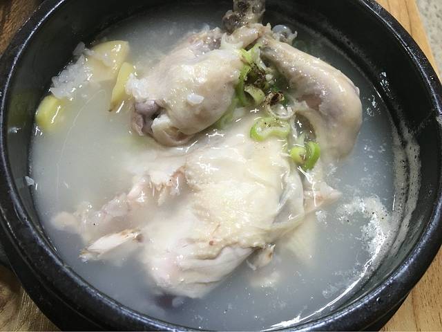 从博物馆出来,我们今天的行程也就差不多结束了,5点左右我们要求司机带我们去保健路附近的济源参鸡汤。我是觉得在国外大众点评网还能用真的是很神奇。依靠韩巢网和大众点评网结合真的是可以发先很多美食。济源家的普通参鸡汤是12000韩币,加鲍鱼的参鸡汤是17000韩币。基本上是一只全鸡,剔除了头和脖子,味道很鲜美,很有食欲的白汤,瞬间觉得韩国人估计吃的蛮清淡的,因为汤本身是很清淡的,另外会给盐,不过沾了点齁死人,本身参鸡汤里面也有米饭,还有参,真的是料足足的,基本被国人包场的感觉,老板也蛮友好,可以试一下。