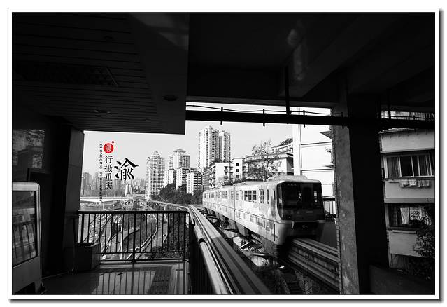 轻轨3号线从牛角沱车站穿出