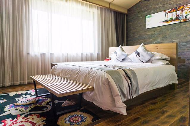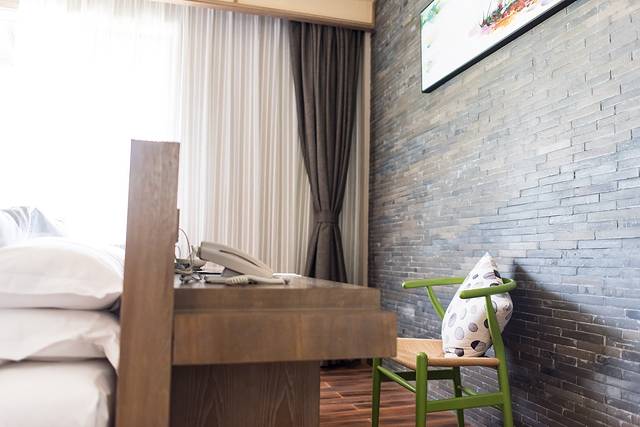 明里酒店的房间层高很高,家具基本都是原木的,很温暖的感觉。