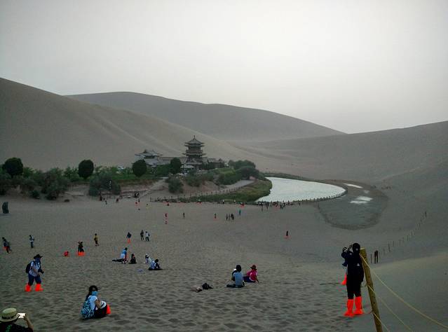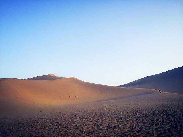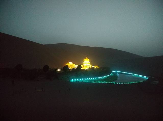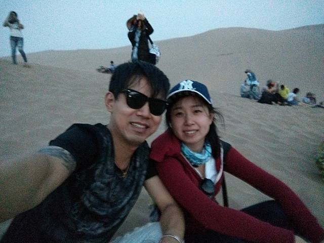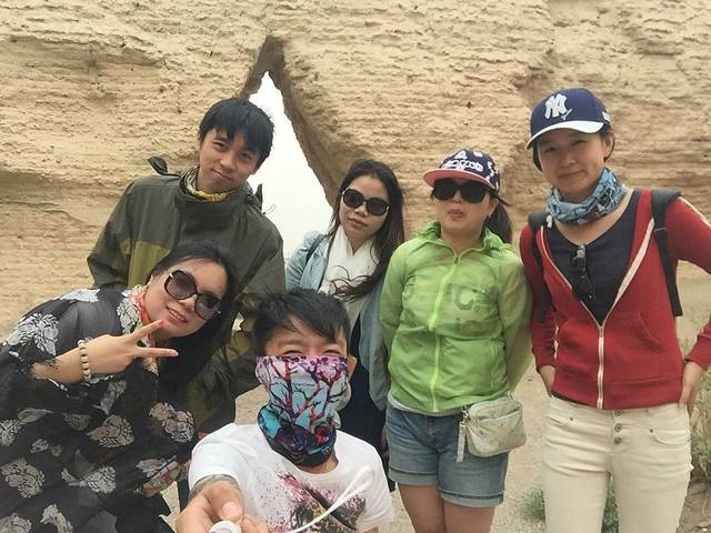 鸣沙山、月牙泉,没到过沙漠的绝对兴奋。那感觉,就跟到东北看到大雪一样一样的。刚开始都还蛮好,可惜的是,后来起风了,有点沙尘暴的赶脚。狂风卷沙,鞭打着全身上下,让人领悟了你是风儿我是傻的痛彻心肺。回到房间后,嘴巴里、耳朵里、鼻子里、头发里、衣服里、口袋里、鞋子里,都能倒出半两沙,小伙伴们所有的沙收集起来,可以带回去造房子了。估计,这里当地人造房子不用买沙。