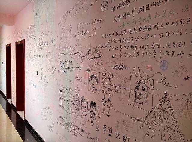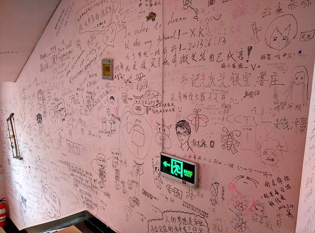 青旅的时光也蛮欢乐的,大堂里打打牌,墙壁上练练字。不过为啥,第一个出局的总是我,是我,还是我。只是旅程接近尾声,看得出大家都有点依依不舍,谁也没提,但那份伤感,还是很显然易见的。