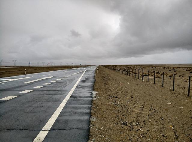 经过瓜洲,都说瓜洲的水果好,我们未能体验,所以不妄加评论,留给后人去评论吧。路两边,确实堆满了哈密瓜,可根本没看到人买,狗倒是看到几只,所以我们就无视的踩踩油门,将TA们淹没在无尽的尾气之中。
