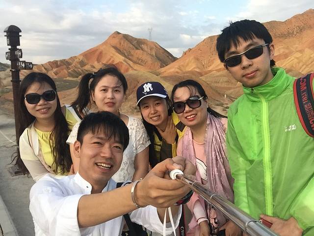 张掖丹霞国家地质公园,形成于600万年前,七彩丹霞地貌,色彩斑斓,气势磅礴,有着悠久时间的沉淀。国内唯一的丹霞地貌与彩色丘陵景观复合区--这是教科书上的介绍。而在弟弟(上图司机小哥既是)的眼中,那就是七彩云片糕,简单、粗暴、美味,有木有。