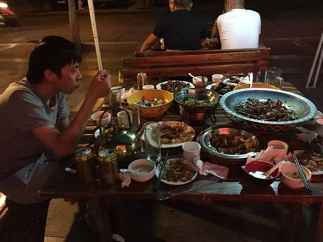 晚餐,有点晚。必定要去敦煌夜市当一回冲头,被宰一回也是心甘情愿的。毕竟出来都要感受下,只是冤大头别连着做就行了。喝点小酒,撸点烤串,价格么,绝对是山珍海味的价。