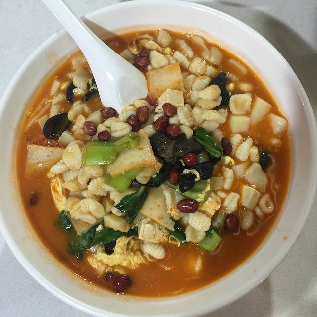从大唐芙蓉园返回吃的晚餐也是在曲江美食城:麻食,一份都是超级足的份量