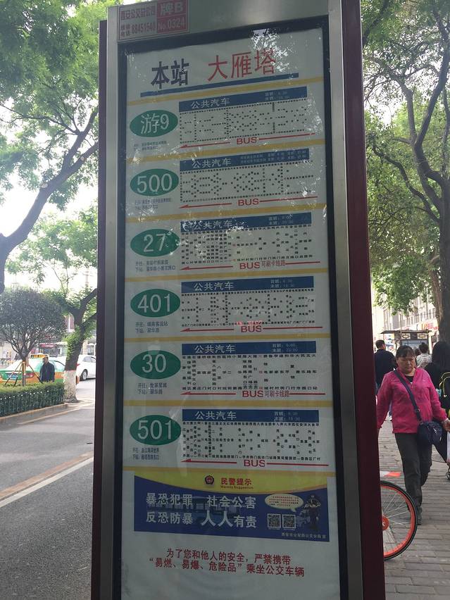 步行至火车站8:50乘5路或30路公交车直达大雁塔,2元/人