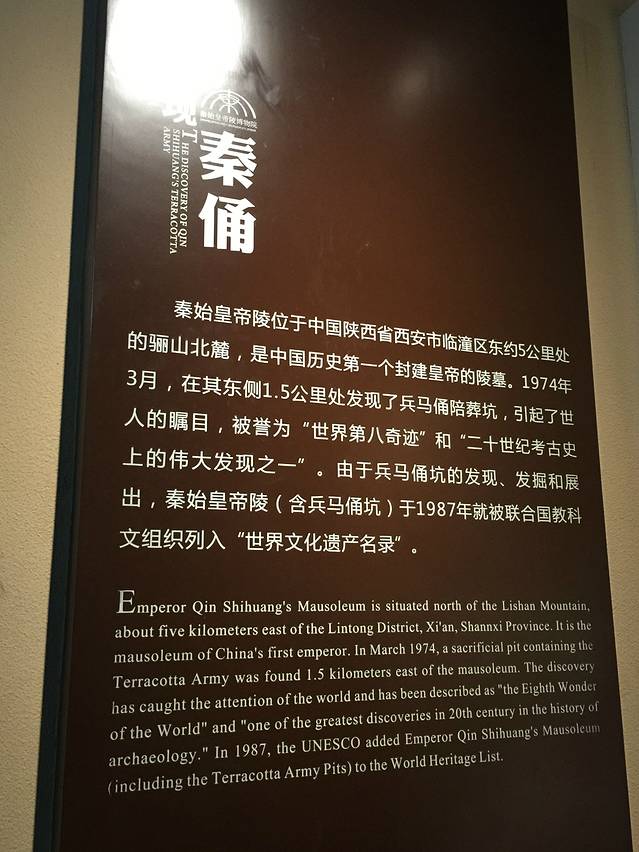 秦兵马俑坑发现于1974-1976年,秦始皇兵马俑博物馆1979年向国内外公开开放。兵马俑的发现被誉为世界第八大奇迹、二十世纪考古史上的伟大发现。