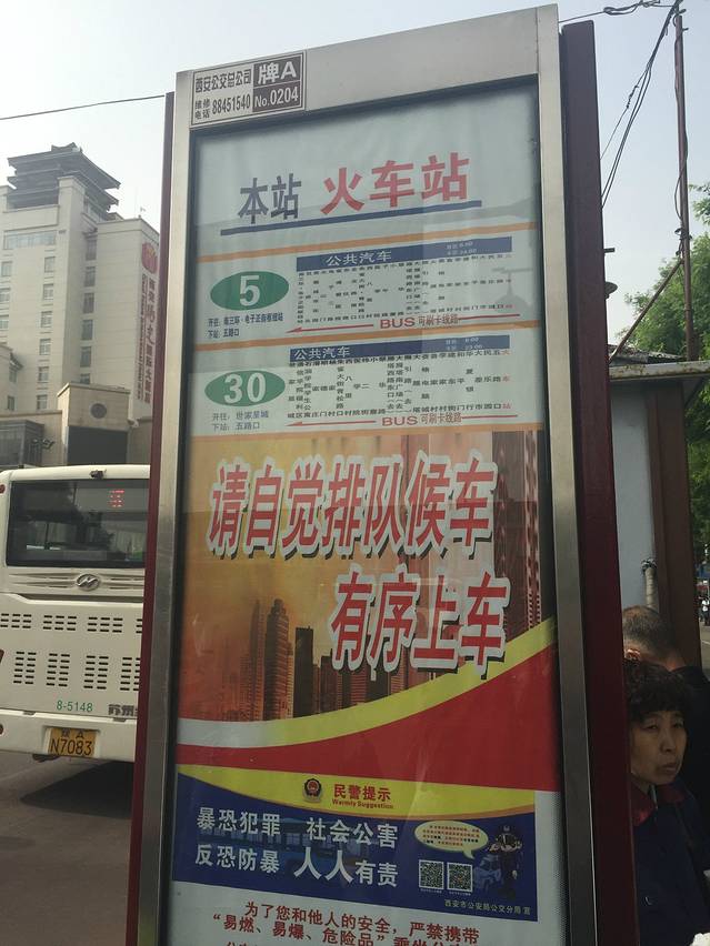 早晨7:30出门,早上南昌凉,低7度左右,步行往火车站方向5分钟到达兵马俑专线车站,步行途中可以看到西安火车站西安汽车站。915,306直达兵马俑站,车很好,座位坐满就开车,全程43公里,75分钟,公交车有讲解人员,先去华清宫再在下车的地方乘车去兵马俑博物馆,再从兵马俑博物馆返回西安火车站。车票6元/人,从华清宫到兵马俑坐车3元/人,从兵马俑返回西安火车站7元/人。