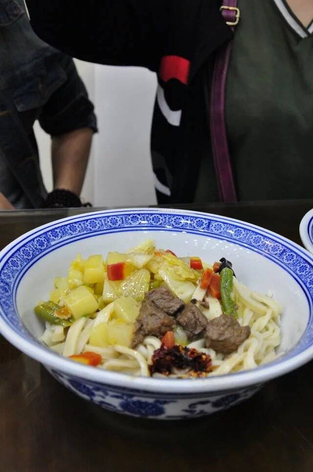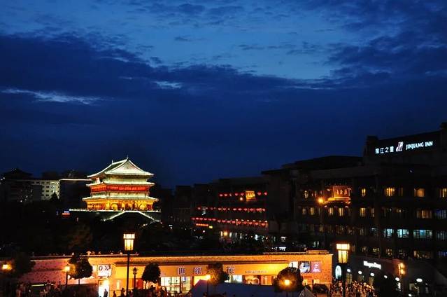 月色未央、夜色朦胧下,我们来到被霓虹灯照耀得绚丽多彩的钟鼓楼。人潮涌动,蓦然回首,仿佛时空将我们带回了那繁花似锦的大唐盛世。走在回民街上,我恍惚以为自己又来到了丽江古城,耳边不时有流浪歌手在哼唱《一瞬间》、《滴答》......我们是来觅食的,biangbiang面、臊子面、肉夹馍、凉皮、泡膜、镜糕、老酸奶......我都要,我们的嘴根本停不下来。