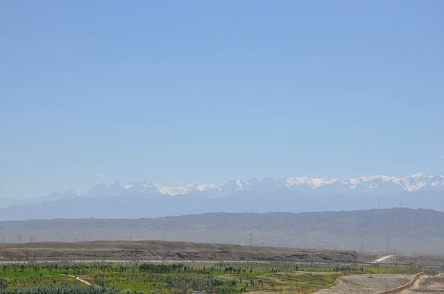 对面的祁连山真的好想去,可惜此刻在修路去不了了,有点失落