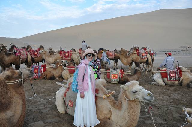 如果说爬山是一件消耗体力的事,那么攀爬沙漠就是一项巨大的挑战,还好有一位好心的健壮男士将我们拉上去。看着旁边的骆驼着实为之心疼,听说在旺季有很多骆驼都会累死,瞬间觉得自己好残忍,因为我骑了它,以后不要骑了。看着它们的眼睛,似乎都有眼泪要溢出,好伤感。骑行途中遇到一个骆驼生气疯了,我被吓了一跳,一直胆战心惊地骑着,不知道那只骆驼现在可好,愿人类都能爱护动物,与大自然和平相处!