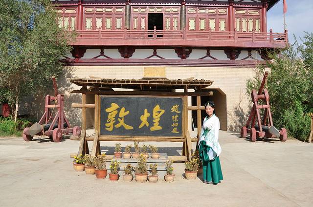 那座再现了唐宋西北重镇敦煌雄姿,被称为中国西部建筑艺术博物馆的敦煌古城,他给我们留下了深刻的印象,也让初次来到敦煌的我们感受到了她的魅力。那些完整的建筑、精美的家具用具、多样的古代服饰,使我们恍如真的置身于古代,感受唐宋边关风采。我们身着古装在古城内畅游、摄影,我们在仿古游乐场娱乐,当然我只钟情于荡秋千,我们在跑马场跑马,我们在酒楼品茗、畅饮......这一切的一切仿佛是在做梦。曾经陪我们做梦的人,现在他们在那里?时光荏苒,曾经深爱,愿得勇敢,不负初心!