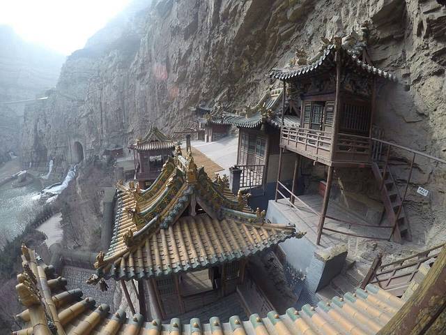 盖在峭壁中间的寺庙,看着就是悬空在山壁上的寺庙,很震撼。真的只能用下面那两个字壮观来形容。值得一看,而且要登上寺庙去看看。门票跟登寺(100/人)费用是分开的,具体的价格记不太清,因为所有费用都是包含在一日游里面的。
