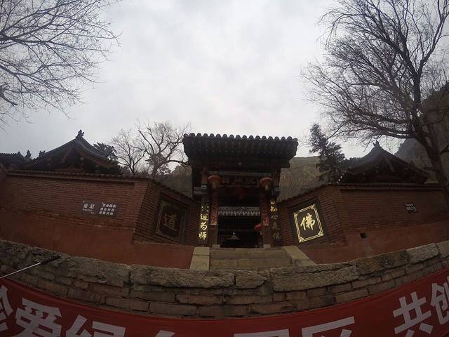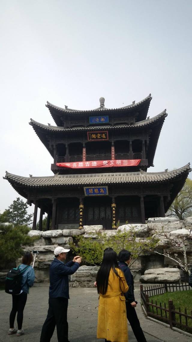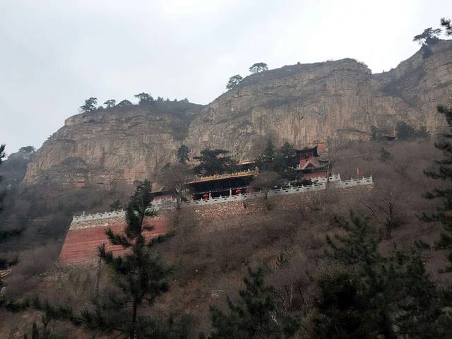 恒山有道教寺院群,一边听导游讲解,一边爬上楼,并不觉得有多累。但是因为来得季节比较早,山还没有开花,树还没有绿,看着没有那么好看。下面的水库也都因为雾看不清。建议爬山还是夏天来。