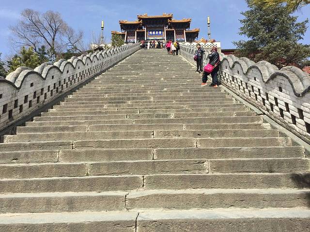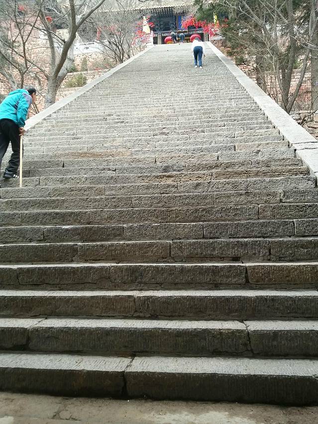上午爬完菩萨顶,我们俩一直在商量要不要坐缆车,1080个台阶,也不是那么轻松能爬的呀。