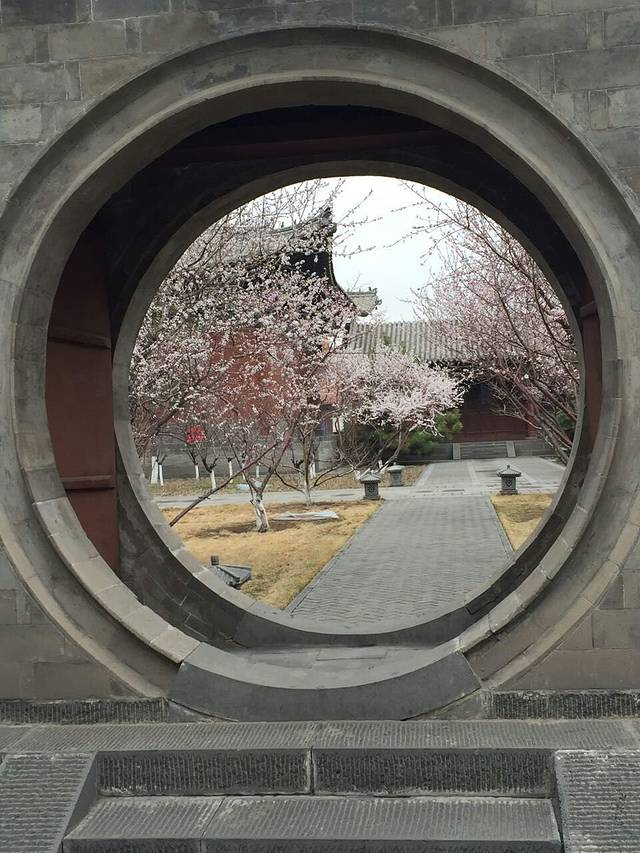 进去后正常游览,因为一大早过去的里面一个人都没有,因为刚好是开桃花季节,寺里面的桃花都开了,蛮好看的。