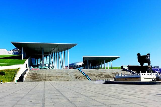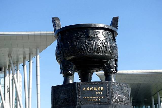 位于博物院的正门通道旁的民族团结宝鼎。这是2007年为庆祝内蒙古自治区成立60周年,中央人民政府赠送给内蒙古自治区的。