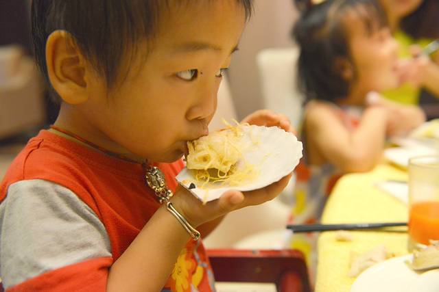 拆鱼羹:食材选用阳山驰名青莲河鲜,拆鱼羹最讲究“爽、滑、鲜”,一般选择骨刺较少的鲜活的鲩鱼,两面煎至金黄,再熬制成奶白色的汤,把胡萝卜、丝瓜、木耳这几种配菜切成丝后,和拆骨后的鱼肉一起加入到鱼汤中熬制成羹。成品鲜甜可口、营养极高,特别适合老人和小孩食用。