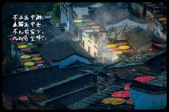 “采菊东篱下,悠然见南山”,这篁岭,也有如此佳境,陶渊明是最适合在自然的,只是不知他在写下这首诗的时候,是否见过这如梦的篁岭。来此不仅仅是欣赏这晒秋人家,更是饱读这中华传统的晒秋习俗。