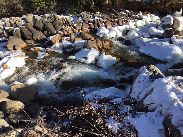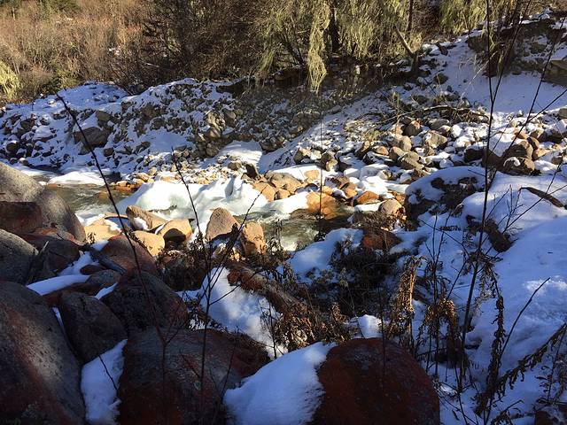 虽然部分景点关闭了,但景还是很美,只可惜光线也很猛,太阳晒得我眼睛睁不开~环保车必然要走,以后可以自由选择到滑雪场和再往上的红石滩。滑雪场是人造的,傍晚开始融化,雪橇都需要租借,据说不接受外带的滑雪撬。这次没有到🎿,送几幅图。