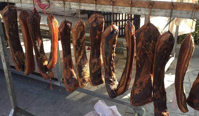 最多的就是这种牦牛肉还有腊肉。我娘说怎么选来着,我忘了……肉胖还是瘦来着?我只知道她买了回去忘记了,发毛了