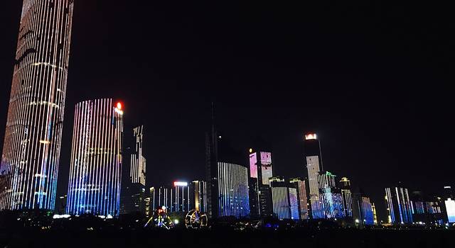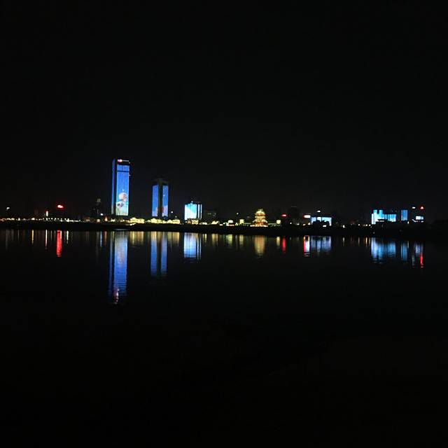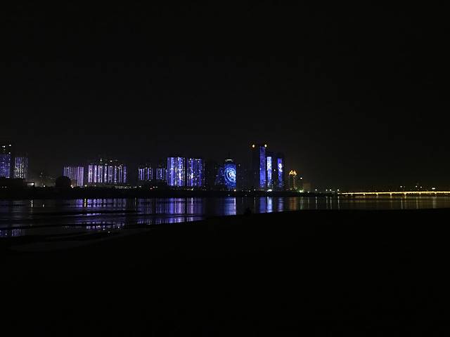 赣江中间看灯光秀真的超级漂亮,可以看到双子塔,滕王阁,摩天轮。