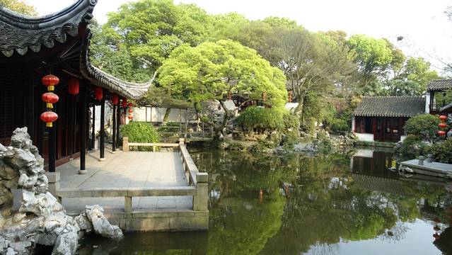 里面能找到中国古典造园的各种手法;框景、对景、漏景、借景、夹景、障景等