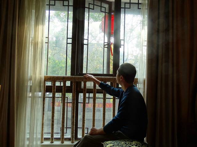 我住在古镇外的一家客栈,古色古香的造型和古镇风情完美融合
