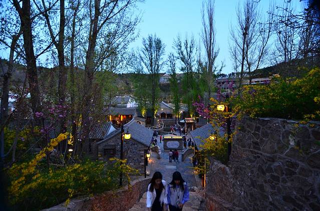 古北水镇19点上灯,而我们的发车时间是在20点,也就是说,我必须在19点半以前往景区出口走,赶到停车场。我只有半个小时的时间走走拍拍,而且还需要不停地和游客说:“借光,借光”