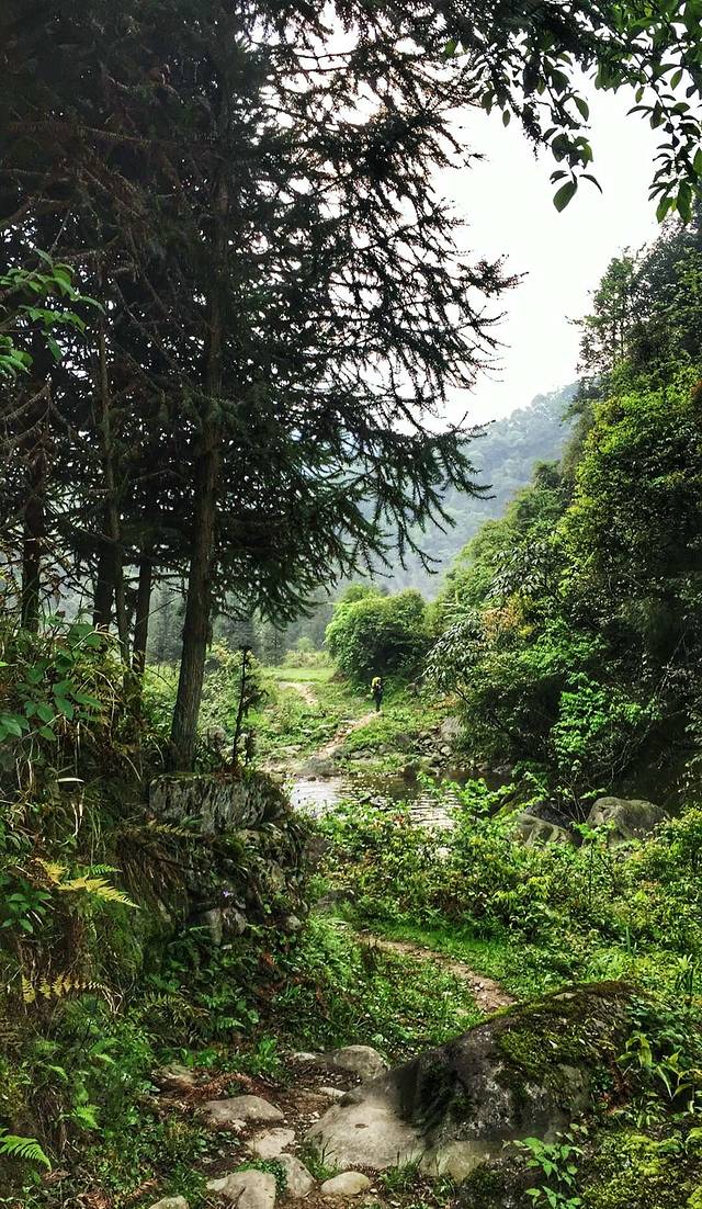 徒步过了泡木坝村后,进入耕机路慢慢的步入了森林,旁边的小溪,潺潺的流水声,行走在山林间仿佛置身于童话世界里。