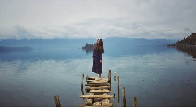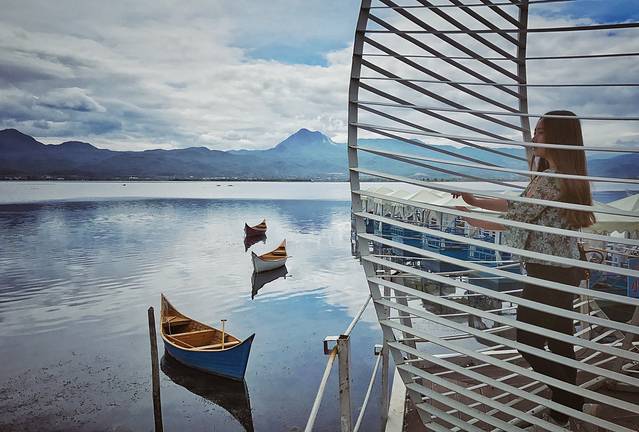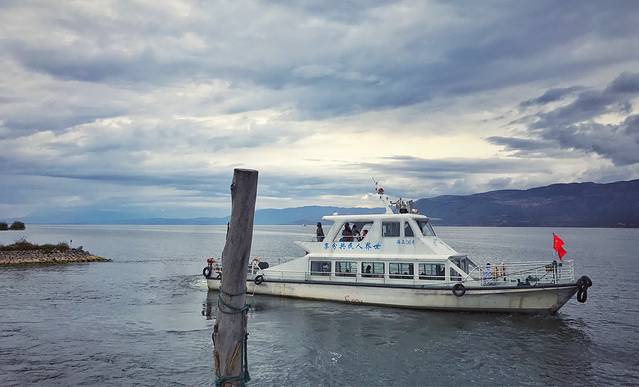 到了码头肯定要坐船嘛,船票180/人。才村码头的船往返于金梭岛,岛上还会停留30分钟左右。在船上可以近距离感受洱海,但是我们去的那天天气不太好,还在下雨,从拍出来的照片就可以感受到。