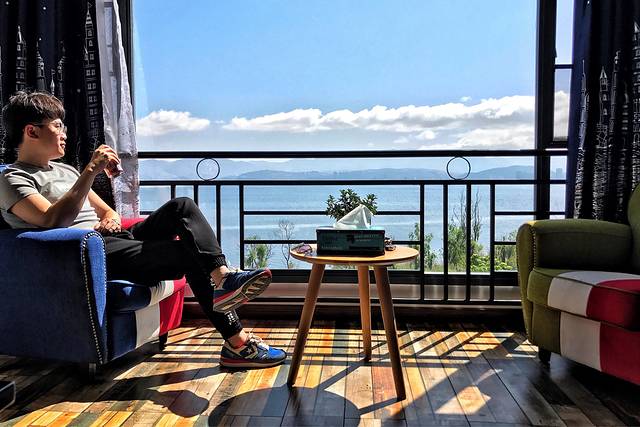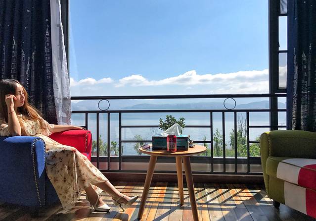 金梭岛上也有一些客栈和饭店,我们去的那会儿都在关门整顿。闲来无事在网上订当晚的酒店,然而我们不得不面对的一个现实就是,整个洱海边90%的酒店都不开门,剩余开门的酒店90%都看不到海。辛苦找了半天发现唯一一家叫做「走走停停」的酒店还有海景房(后来听老板说酒店刚好被划在了整治红线之外)。立刻拍下来,价格400/天,贵,但是值。酒店是今年装修的,非常新,视野开阔,洱海景色一览无余。