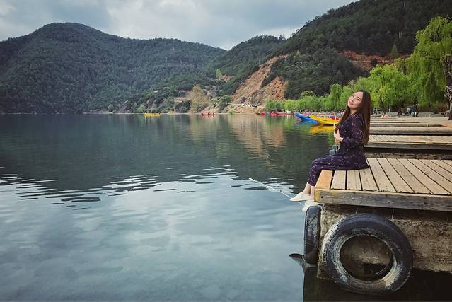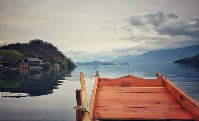 总之是费尽千辛万苦,九牛二虎之力,才算是挨到了泸沽湖。看到泸沽湖出现在眼前的一霎,就知道这趟路没白受罪。泸沽湖的美和洱海美的不同,如果说洱海是位婀娜多姿的妙龄少女,泸沽湖更像是养在深闺的小家碧玉。抒情部分跳过,先找个落脚的地方。