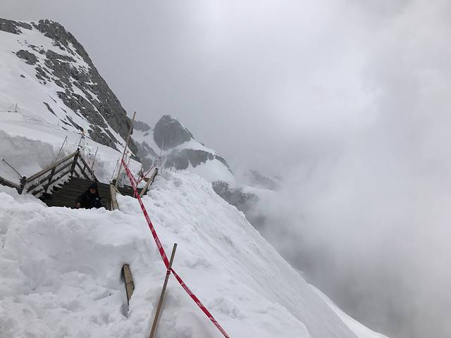2.雪山上因气候的原因经常会赶上大雪封山,即便是丽江当地天气很好,雪山里有可能在下大暴雪。所以你有可能已经花了很多钱买了门票,但只能坐缆车上到海拔3500多米的一个平台,没办法继续前进,也没有人会给你退票。