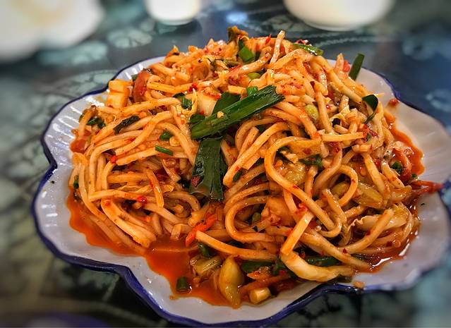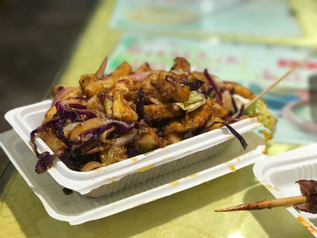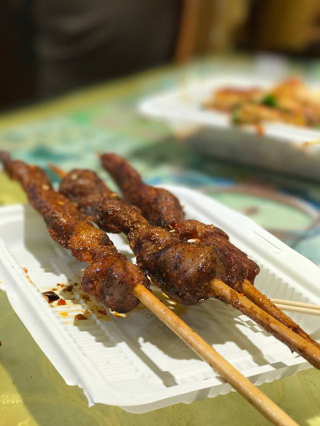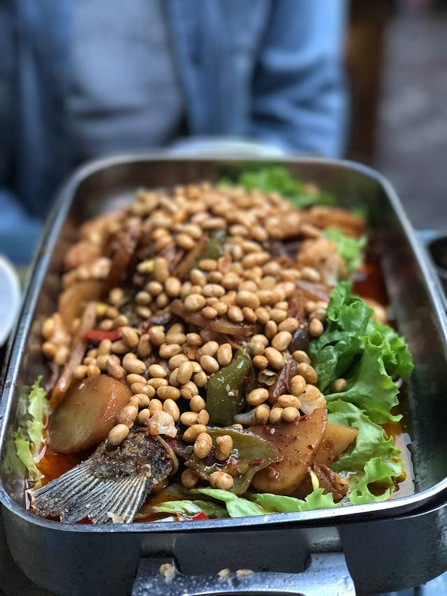 安顿好之后,我们开车去到镇上觅食。找到一家吃烧烤的地方。大理当地人喜欢吃辣,我们点的时候并没有问,但是菜上来全部放了辣椒。不过味道很不错。
