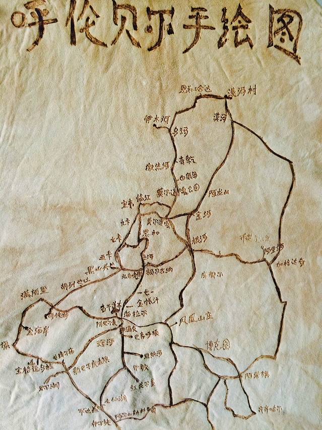 牛皮手工制作的呼伦贝尔路线图~鬼斧神工
