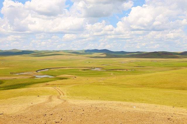 第一天的行程:穿越陈巴尔虎旗大草原,访金帐汗部落,看老舍笔下“天下第一曲水”的莫日格勒河,夜宿恩和。