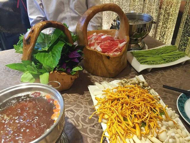 大众点评找的“菌香园”,连锁火锅店,美美的一顿晚餐~装菜的木头篮子,我在室韦的俄罗斯纪念品店看到标价280,真壕