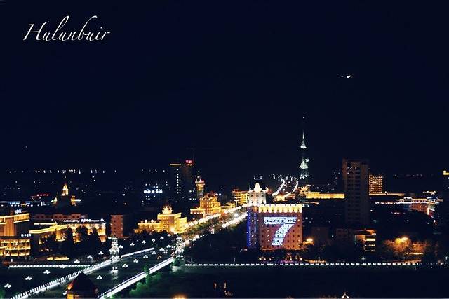 海拉尔的夜,酒店窗外的景色,有飞机刚刚起飞~