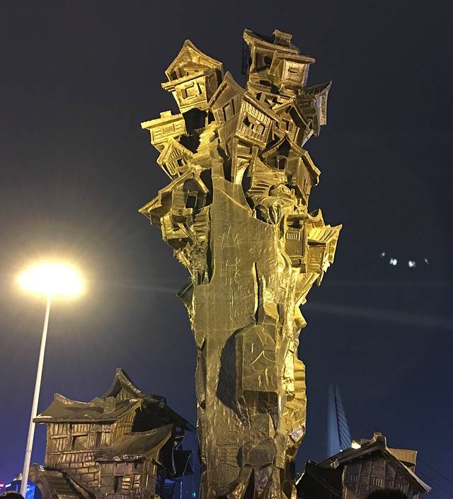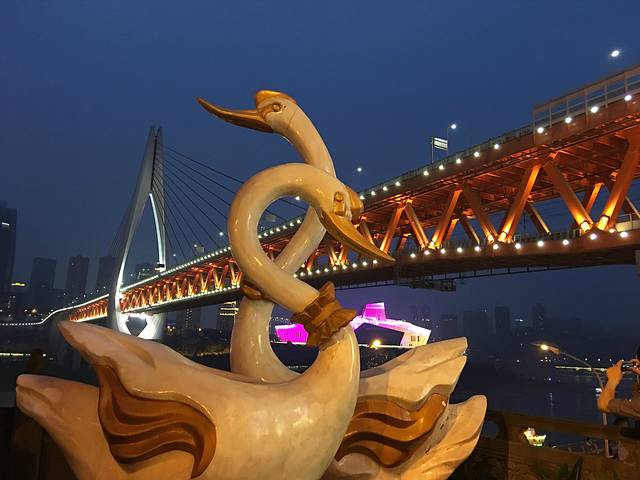 这个桥我忘了叫啥了,但它是观洪崖洞夜景的绝佳位置,熙熙攘攘的人群啊,如果你不恐高,站在桥上围栏边看洪崖洞还是非常壮观的,然后像我这种站在桥上都腿抖的人就认怂吧。