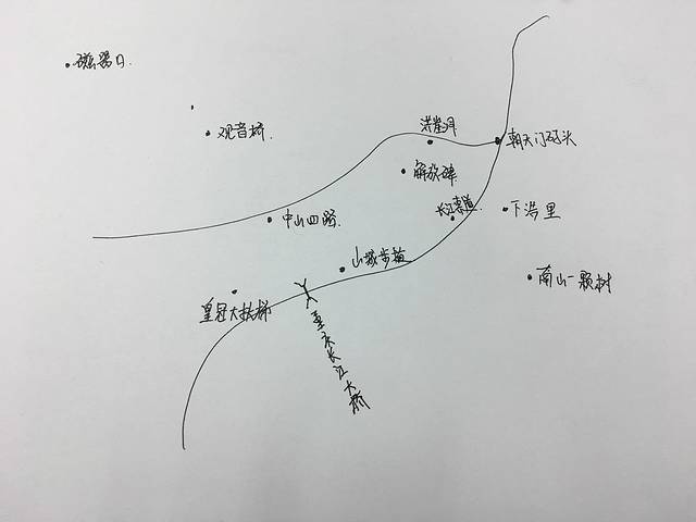 想要在短短几天最大程度的玩遍一个陌生城市的著名景点,完善的攻略是必不可少的,然而我的秘诀就是做一个简易地图先,整理出想去的景点,然后在一张纸上标注出他们之间的大概的距离和方位,那这样就很容易安排出每天的行程,节省很多景点之间的奔波,下面就是我做的重庆游玩图.